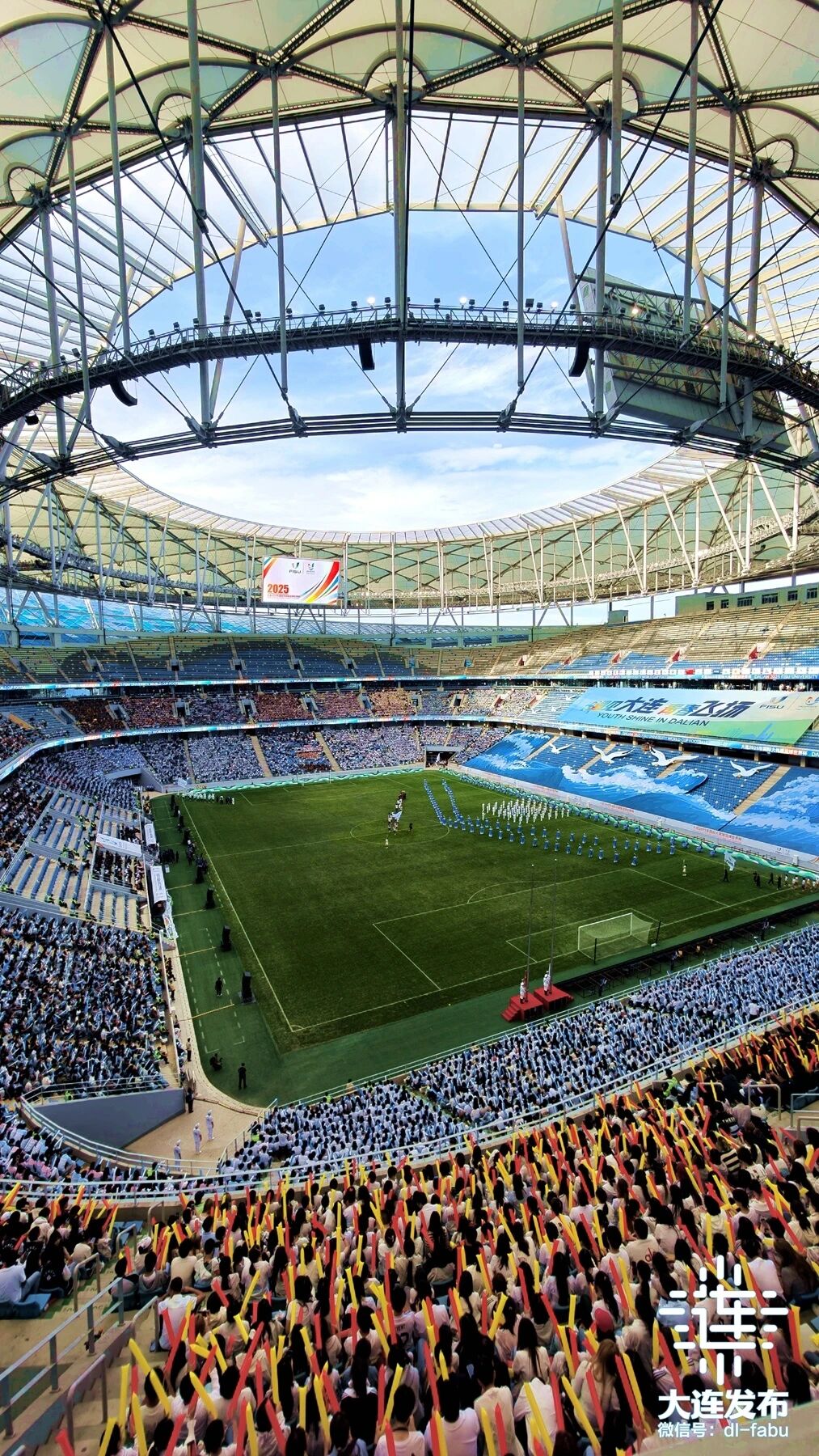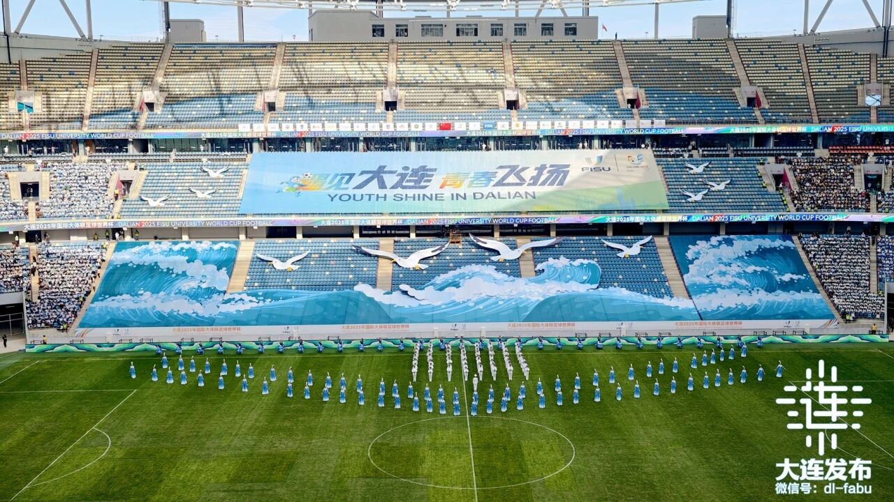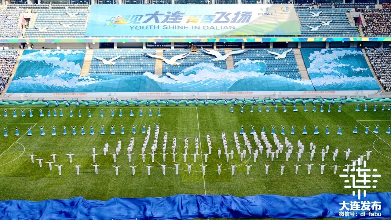 開幕式文藝表演在萬眾矚目中璀璨綻放。1200余位在連高校學子及中小學生傾情演繹,舞臺上碧波涌動、鷗鳥翱翔,青春的活力與濱城的海韻完美交融,將開放包容的城市氣質與迎接五洲賓朋的熱情,化作澎湃的視覺交響。