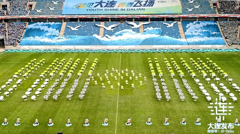 承擔開場儀式表演的,除了來自大連7所高校的1200多名大學生外,大連市童聲合唱團的孩子們手持大賽吉祥物奔跑入場,盡顯大連兒童的蓬勃朝氣;在《茉莉花》的表演中,來自大連歌舞劇院的演員們,以曼妙的舞姿詮釋中國傳統(tǒng)文化的獨特魅力;大連雜技團在主題曲《我們要勝利》中融入青春洋溢的舞蹈,全程活力四射,將現(xiàn)場氛圍推向高潮。