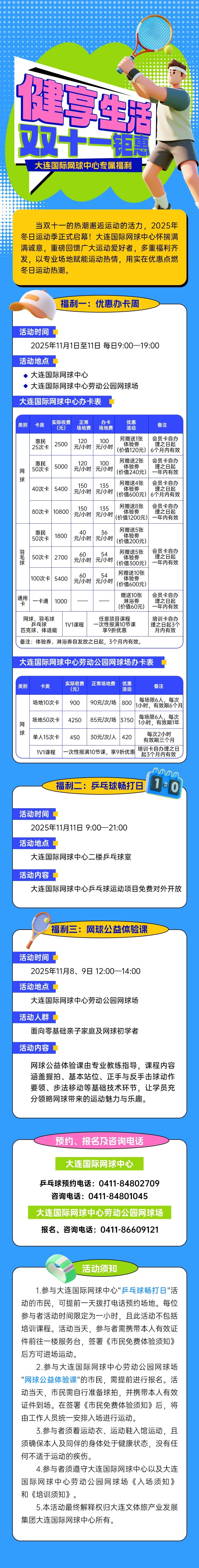 “健享生活,雙十一鉅惠”大連國際網(wǎng)球中心專屬福利