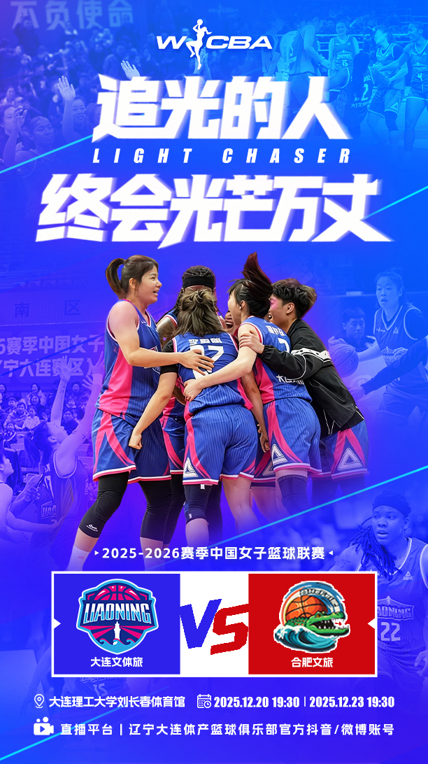 2025-26賽季W(wǎng)CBA常規(guī)賽第7輪、第8輪,大連文體旅女籃繼續(xù)坐鎮(zhèn)主場,對陣小組勁敵——合肥文旅女籃。六輪戰(zhàn)罷,兩隊分列小組積分榜前兩位,這是真正意義上的強(qiáng)強(qiáng)對話、榜首之爭。愿大連文體旅的姑娘們繼續(xù)以團(tuán)隊為翼,以拼搏為徑,追光而遇,沐光而行!12月20日19:30,官方抖音、微博賬號全程直播,捍衛(wèi)主場,閃耀光芒!