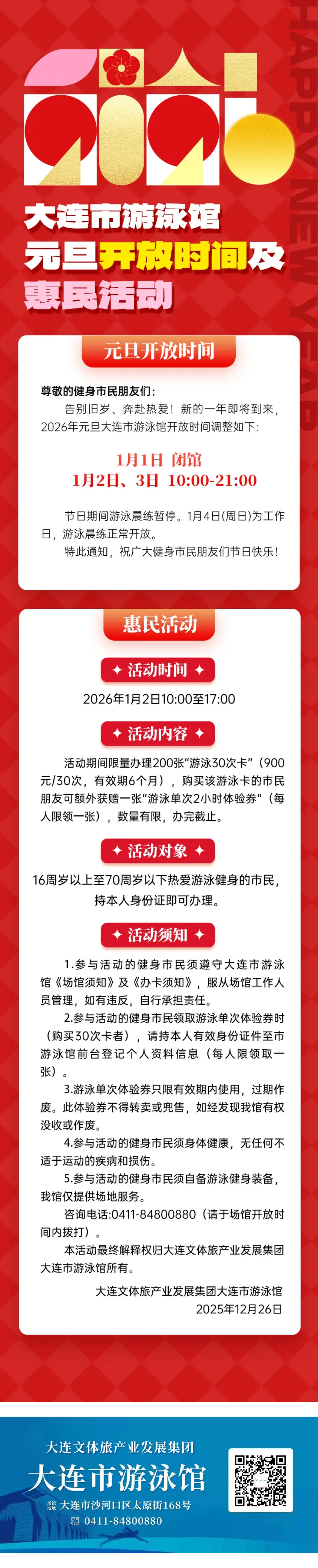 大連市游泳館元旦開放時(shí)間及惠民活動(dòng)