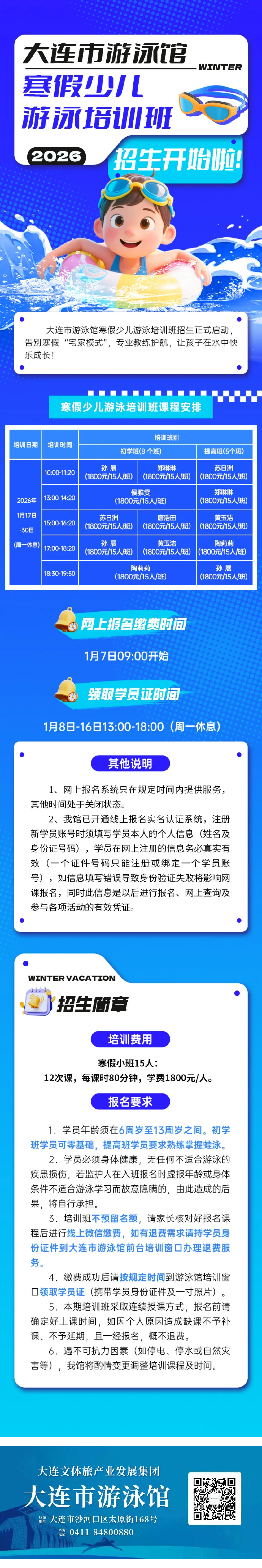 大連市游泳館寒假少兒游泳培訓(xùn)班招生開始啦!
