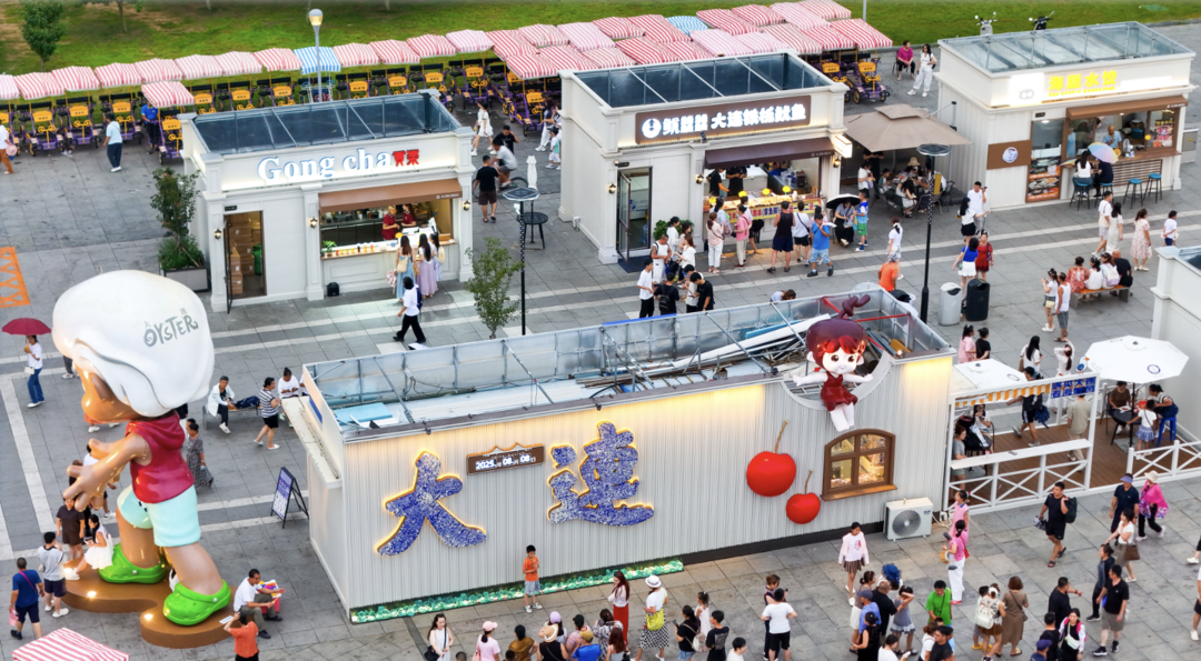 “東港·原點(diǎn)里”街區(qū),是潮玩夜生活的時(shí)尚新主場(chǎng)。300米的街區(qū),北側(cè)檔口、南側(cè)店鋪、中央步道、游艇港岸線觀景露臺(tái)布局精巧。漫步其中,點(diǎn)一杯咖啡,看游艇在波光中穿梭,落日余暉灑在身上,遠(yuǎn)處噴泉盛宴正酣,濱海不夜城的獨(dú)特魅力盡顯。街區(qū)負(fù)責(zé)人張譯丹介紹:“此次升級(jí),還原了部分城市記憶場(chǎng)景,新增的大連城市文化展廳、闖關(guān)東主題雕塑等實(shí)物展陳,讓游客在游玩中感受城市的歷史脈絡(luò)?!?br />