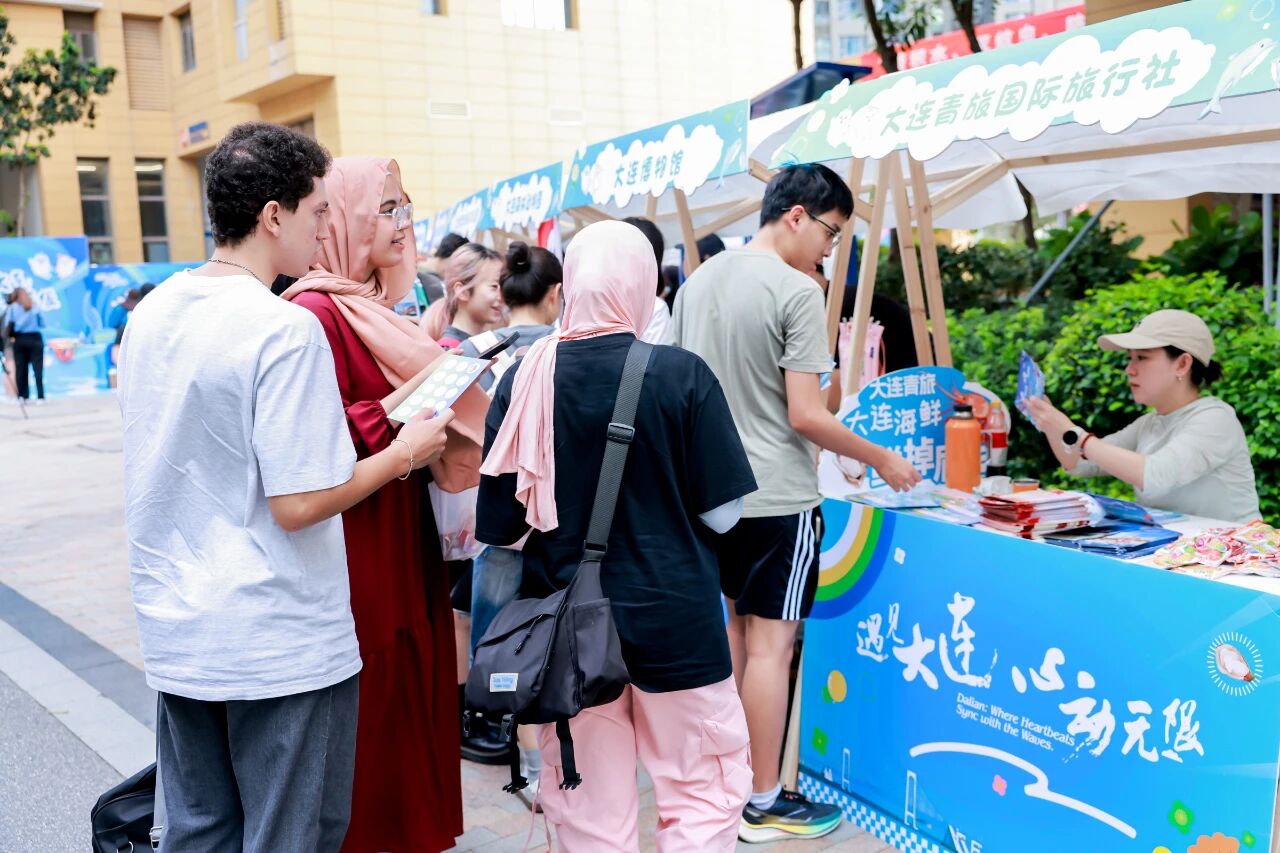 集團(tuán)精心打造的文旅主題花車市集成為全場焦點(diǎn)。大連老虎灘海洋公園帶來海洋萌寵IP周邊,大連森林動(dòng)物園帶來了原創(chuàng)周邊紀(jì)念品及特色印章,大連青旅國際旅行社提供精品線路咨詢,共同展現(xiàn)集團(tuán)文旅資源的多元魅力,多位大連籍學(xué)子主動(dòng)擔(dān)任“家鄉(xiāng)推薦官”,為大連熱情代言,吸引眾多學(xué)子駐足交流。