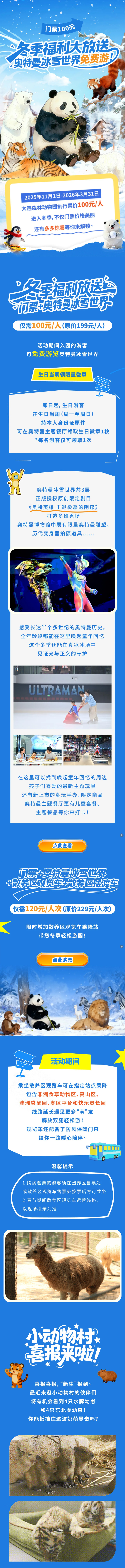 【動(dòng)物園門票100元】冬季福利大放送,奧特曼冰雪世界免費(fèi)游!