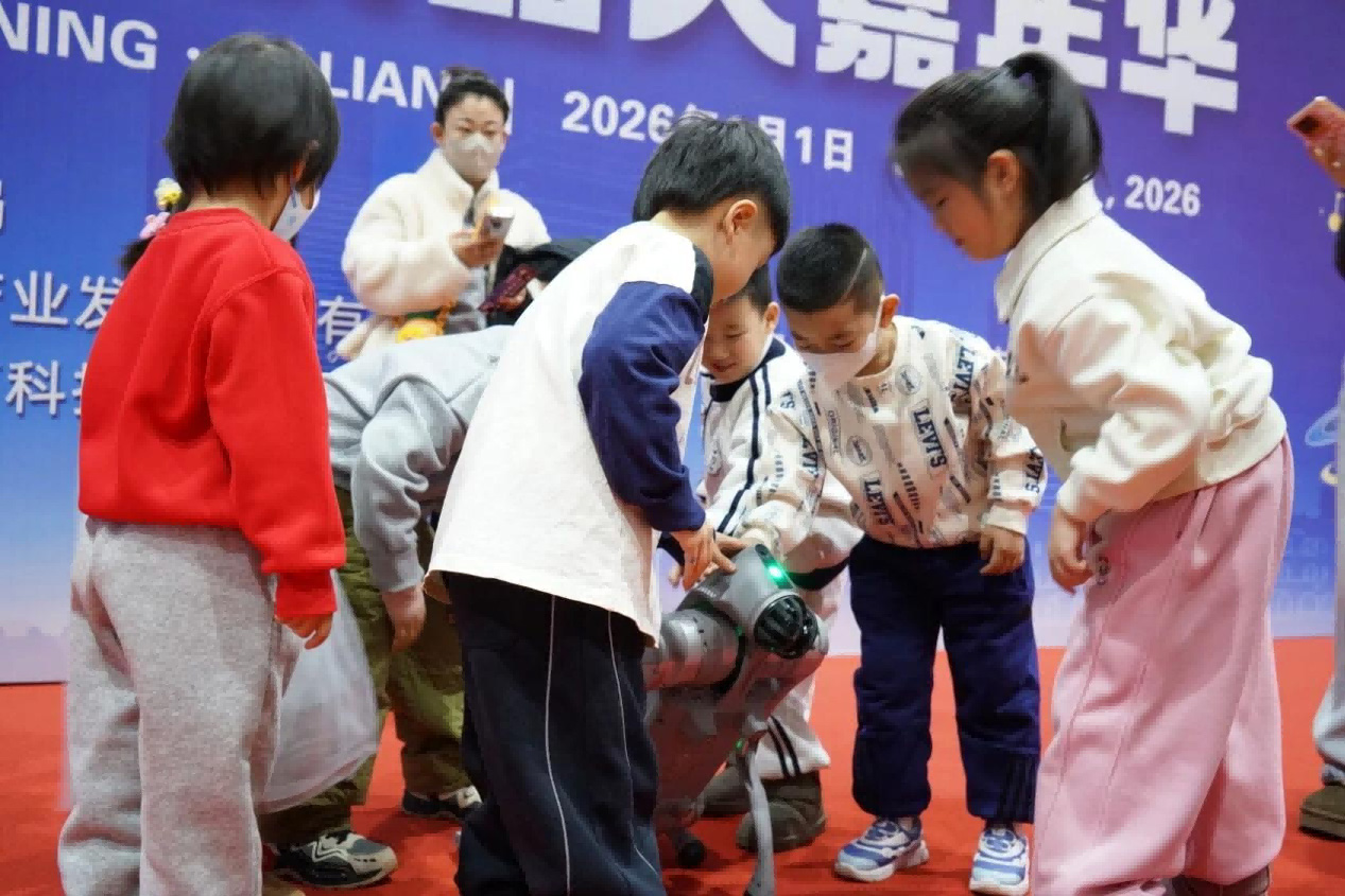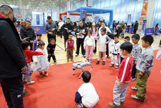 要說現(xiàn)場最受歡迎的環(huán)節(jié),當屬萌寵機器人的互動時刻!神秘嘉賓阿爾法機器狗一亮相,便憑借憨態(tài)可掬的模樣圈粉無數(shù)。它靈活地穿梭在人群中,與孩子們親密互動,時而點頭、時而打滾,可愛的表現(xiàn)引得現(xiàn)場歡聲笑語不斷。這溫馨的一幕,不僅拉近了科技與大眾的距離,更讓大家感受到了科技的溫度。原本冰冷的機械,在人性化的互動中變得溫暖可親,也讓孩子們對科技產生了更濃厚的興趣與好感。