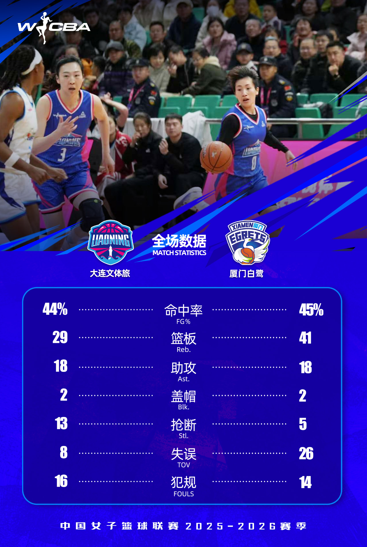 北京時間2025年12月5日19時30分,2025-2026賽季W(wǎng)CBA常規(guī)賽第二輪大連文體旅女籃繼續(xù)坐鎮(zhèn)主場,迎來與廈門白鷺女籃的二番戰(zhàn)較量。經(jīng)過四節(jié)鏖戰(zhàn),憑借李雨萌終場前的三分命中,大連文體旅女籃實現(xiàn)絕殺逆轉(zhuǎn),最終,78:76戰(zhàn)勝對手,收獲新賽季開局兩連勝。