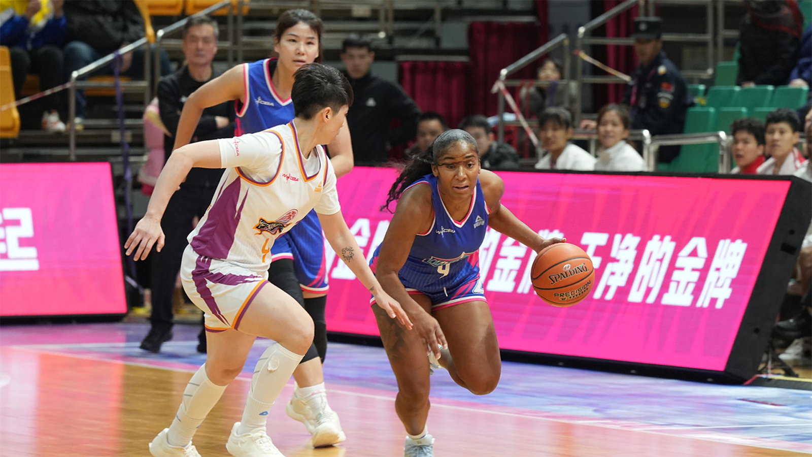 末節(jié)開始,河南隊連續(xù)沖擊籃下試圖迫近比分。大連文體旅女籃立即給予回應(yīng),阿倫外線三分命中,陳孟欣、胡玥明和李雨萌也相繼得分,打出一波流暢進攻,繼續(xù)將分差拉大。盡管對手末段連續(xù)追分,但大連文體旅女籃始終控制場上局面。全場比賽結(jié)束,大連文體旅女籃69:59戰(zhàn)勝河南豫光金鉛女籃,取得新賽季開局五連勝。