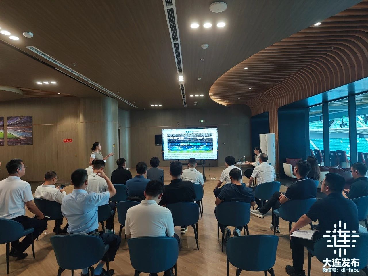 考察組深入考察了大連梭魚灣足球場、大連足球青訓(xùn)基地等核心賽事場地,重點調(diào)研了比賽場地、功能設(shè)施配套、訓(xùn)練場地規(guī)劃和文化交流區(qū)等建設(shè)情況,并聽取執(zhí)委會辦公室文化活動部導(dǎo)演組關(guān)于開、閉幕式的總體設(shè)計匯報。目前,賽事場地規(guī)劃、功能分區(qū)已初步完成,關(guān)鍵區(qū)域設(shè)施(草皮質(zhì)量、替補(bǔ)席、球員通道等)勘查細(xì)致到位,青訓(xùn)基地的4塊比賽場地已進(jìn)入全面養(yǎng)護(hù)期,確保賽期達(dá)到競賽標(biāo)準(zhǔn)。