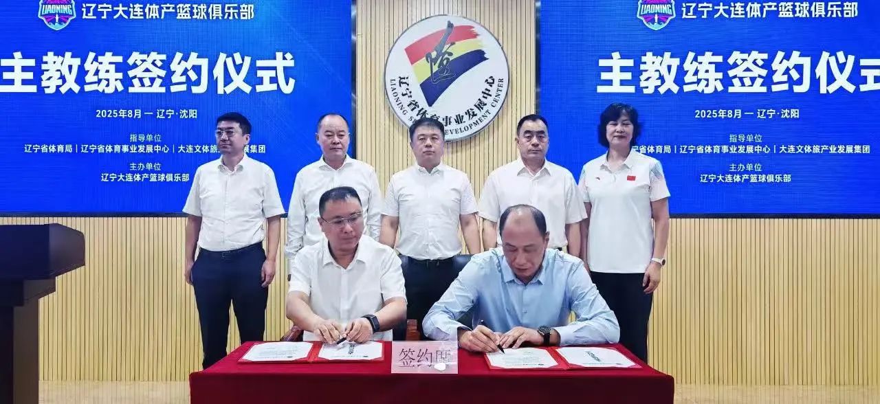 遼寧大連體產(chǎn)籃球俱樂(lè)部在遼寧省體育事業(yè)發(fā)展中心隆重舉行主教練簽約儀式。遼寧省體育局黨組書記、局長(zhǎng)曹陽(yáng),遼寧省體育事業(yè)發(fā)展中心黨委書記王海峰,遼寧省體育事業(yè)發(fā)展中心主任王萍,遼寧省體育事業(yè)發(fā)展中心副主任丁美媛、王輝、李曄昱,大連文體旅產(chǎn)業(yè)發(fā)展集團(tuán)黨委書記、董事長(zhǎng)李雪松,大連文體旅產(chǎn)業(yè)發(fā)展集團(tuán)副總經(jīng)理周凱,遼寧大連體產(chǎn)籃球俱樂(lè)部總經(jīng)理夏光濱等嘉賓共同出席并見(jiàn)證簽約。