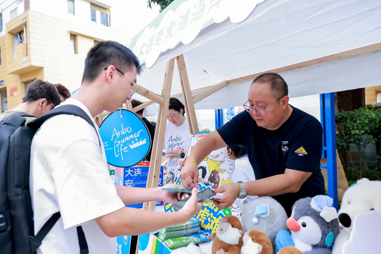 集團(tuán)精心打造的文旅主題花車市集成為全場(chǎng)焦點(diǎn)。大連老虎灘海洋公園帶來(lái)海洋萌寵IP周邊,大連森林動(dòng)物園帶來(lái)了原創(chuàng)周邊紀(jì)念品及特色印章,大連青旅國(guó)際旅行社提供精品線路咨詢,共同展現(xiàn)集團(tuán)文旅資源的多元魅力,多位大連籍學(xué)子主動(dòng)擔(dān)任“家鄉(xiāng)推薦官”,為大連熱情代言,吸引眾多學(xué)子駐足交流。
