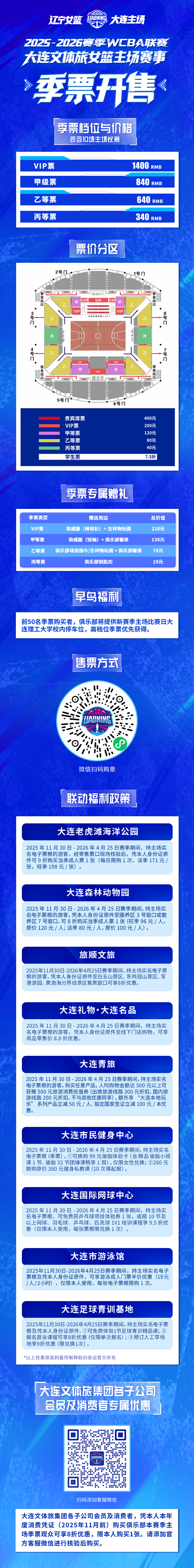 大連文體旅女籃主場季票現(xiàn)已開售!我們誠邀您以超值價格鎖定常規(guī)賽10場主場觀賽坐席,即刻搶購,與我們一起并肩戰(zhàn)斗,把勝利留在主場!