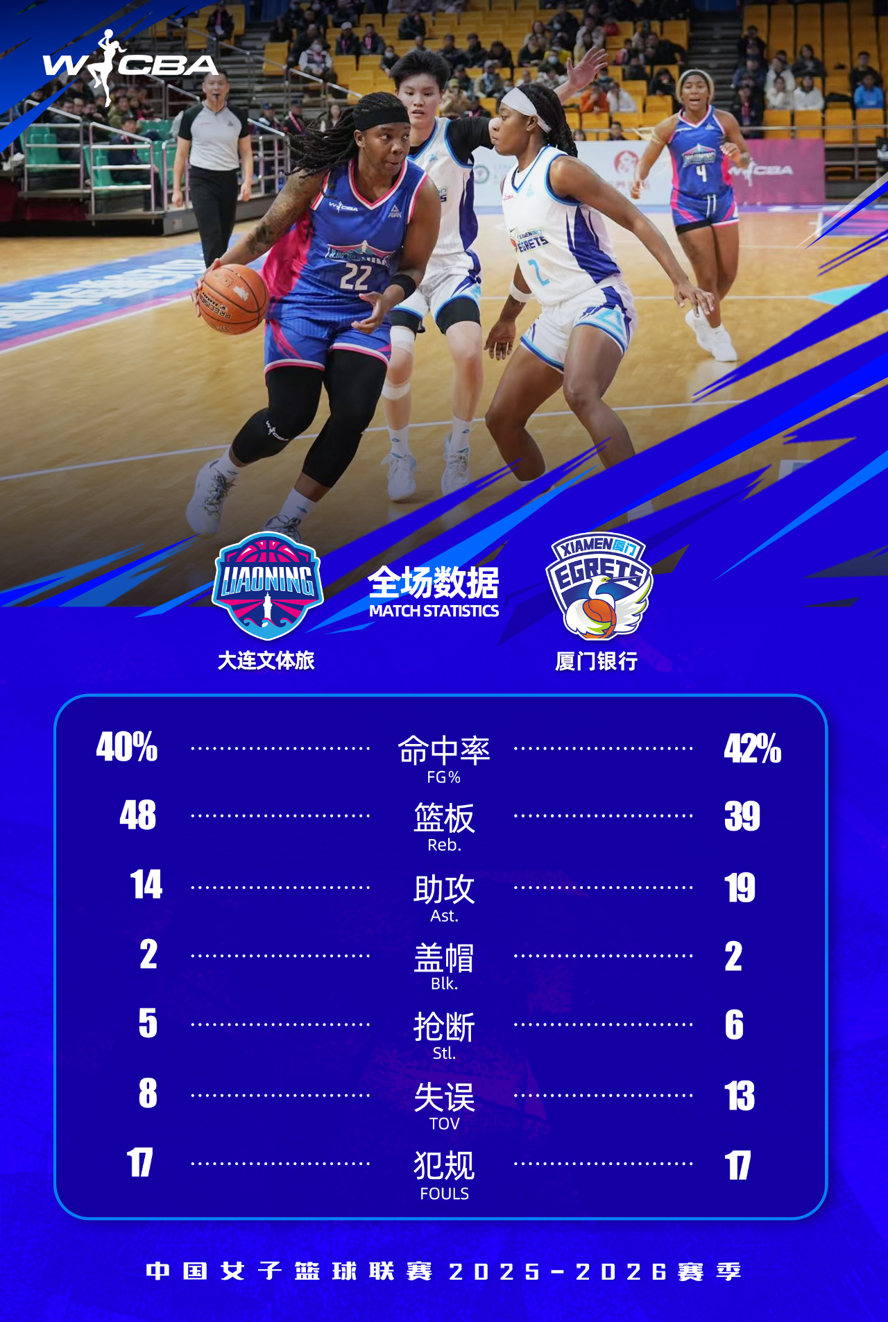 北京時(shí)間2025年12月2日19時(shí)30分,2025-2026賽季W(wǎng)CBA常規(guī)賽第一輪賽事正式打響,大連文體旅女籃坐鎮(zhèn)主場迎戰(zhàn)廈門銀行女籃。在半場落后的不利局面下,大連文體旅女籃展現(xiàn)出頑強(qiáng)斗志與團(tuán)隊(duì)精神,最終85:76逆轉(zhuǎn)戰(zhàn)勝對(duì)手,取得新賽季開門紅!