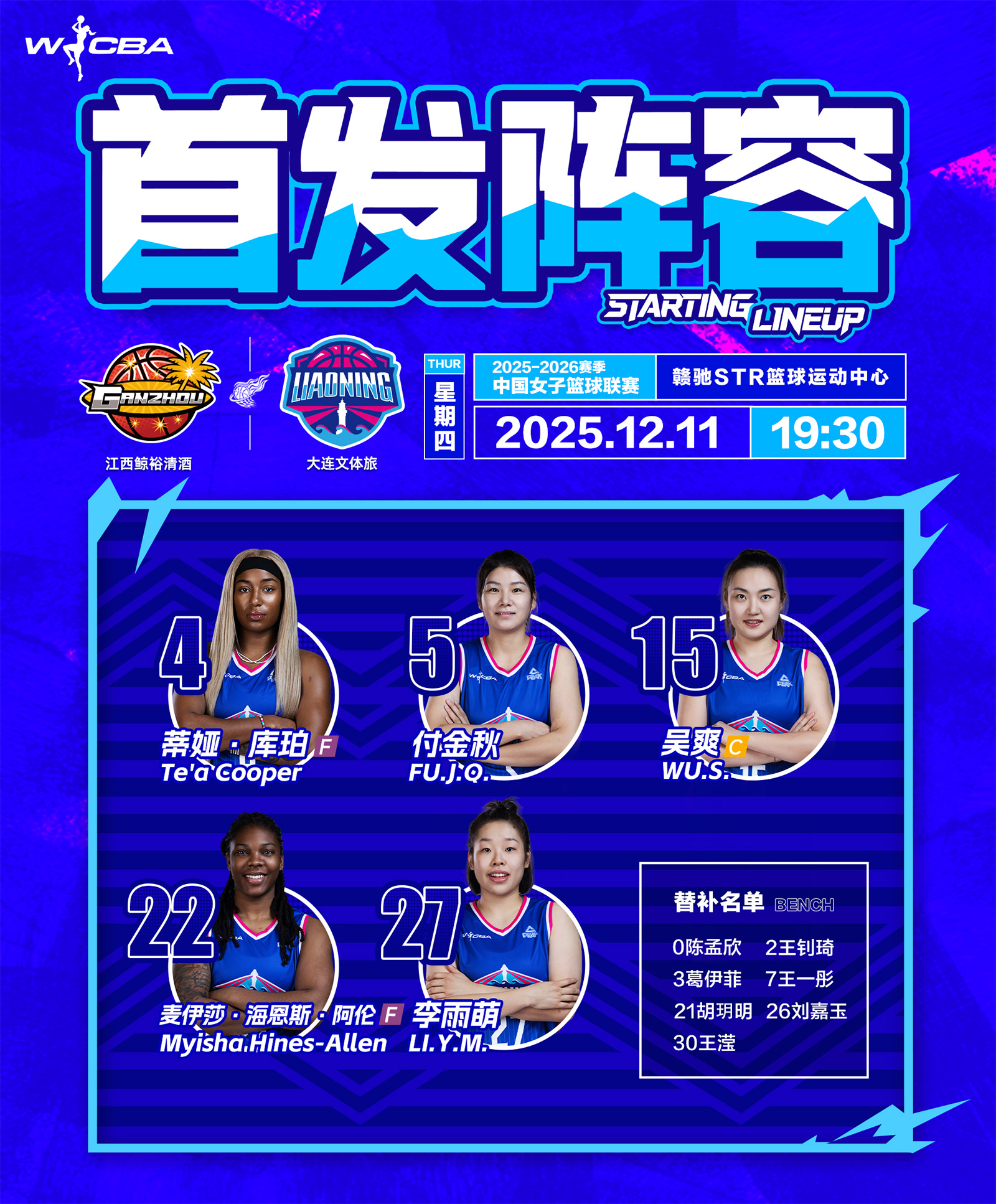 北京時(shí)間2025年12月11日19時(shí)30分,2025-2026賽季W(wǎng)CBA常規(guī)賽第四輪繼續(xù)進(jìn)行,大連文體旅女籃再度客場(chǎng)對(duì)陣江西鯨裕清酒女籃。憑借全隊(duì)的整體實(shí)力與流暢的團(tuán)隊(duì)配合,大連文體旅女籃從開(kāi)場(chǎng)便牢牢掌控比賽節(jié)奏,最終以117:91戰(zhàn)勝對(duì)手,豪取新賽季開(kāi)局四連勝!