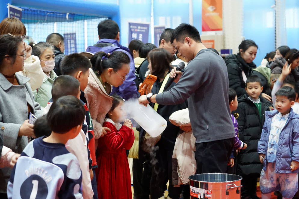 科技領航,未來已來!活動現(xiàn)場的科技亮點更是讓人目不暇接。無人機攜著新年的祝福在天空中自由翱翔,靈活的姿態(tài)引來陣陣驚呼;大疆機甲酷炫登場,精準的操控、強大的性能,盡顯科技的硬核實力;真諦科學哇塞老師帶來的科學小實驗更是驚艷全場,奇妙的現(xiàn)象讓孩子們睜大了好奇的眼睛,紛紛駐足圍觀,探索的熱情被徹底點燃。這些前沿科技元素的融入,讓整個活動現(xiàn)場充滿了未來感,也讓大家看到了體育發(fā)展的全新方向——科技賦能下的體育,不僅更具趣味性,更能激發(fā)全民參與的熱情和創(chuàng)新活力。