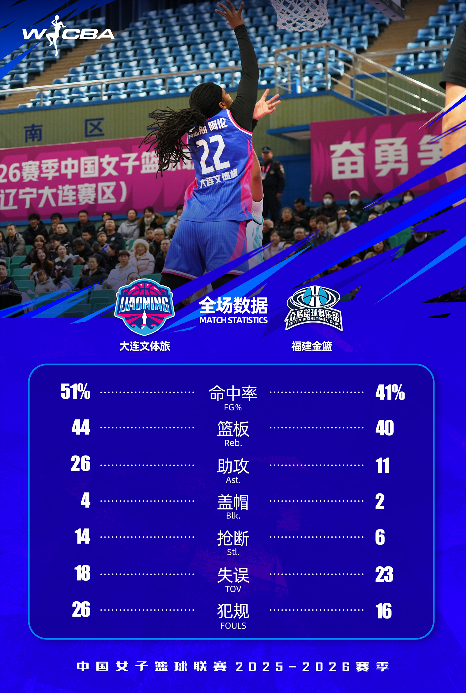 北京時間2026年1月29日19時30分,2025-26賽季W(wǎng)CBA常規(guī)賽第十九輪,大連文體旅女籃坐鎮(zhèn)主場迎戰(zhàn)福建金籃女籃。全場比賽,大連文體旅女籃從開場便展現(xiàn)強大統(tǒng)治力,始終掌控比賽節(jié)奏。最終,大連文體旅女籃98:79福建金籃女籃,以一場酣暢淋漓的大勝回饋主場球迷。