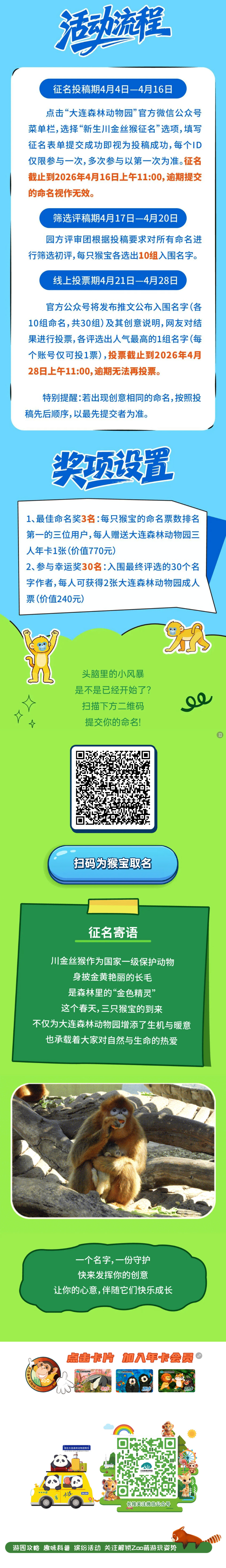 以名為禮,呵護(hù)新生,大連森林動物園川金絲猴征名計劃等你加入!