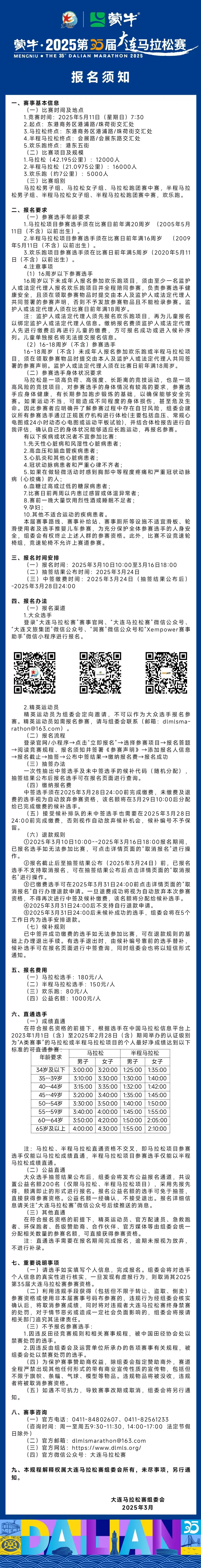 蒙牛?2025第35屆大連馬拉松賽競(jìng)賽規(guī)程